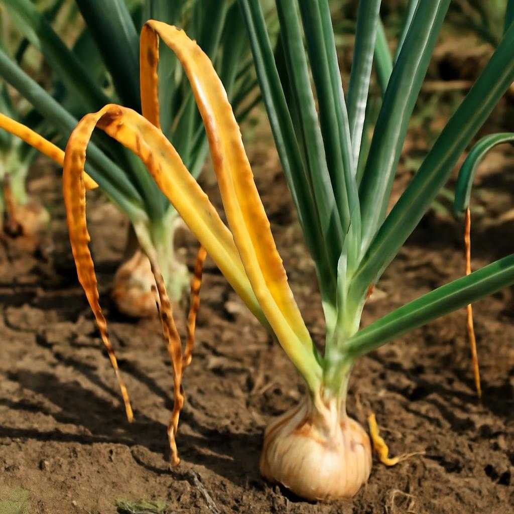 Мы наблюдаем, как перо лука внезапно теряет изумрудный тон, будто поле перестало дышать. Жёлтый сигнал напоминает о дисгармонии внутри растения: недостача